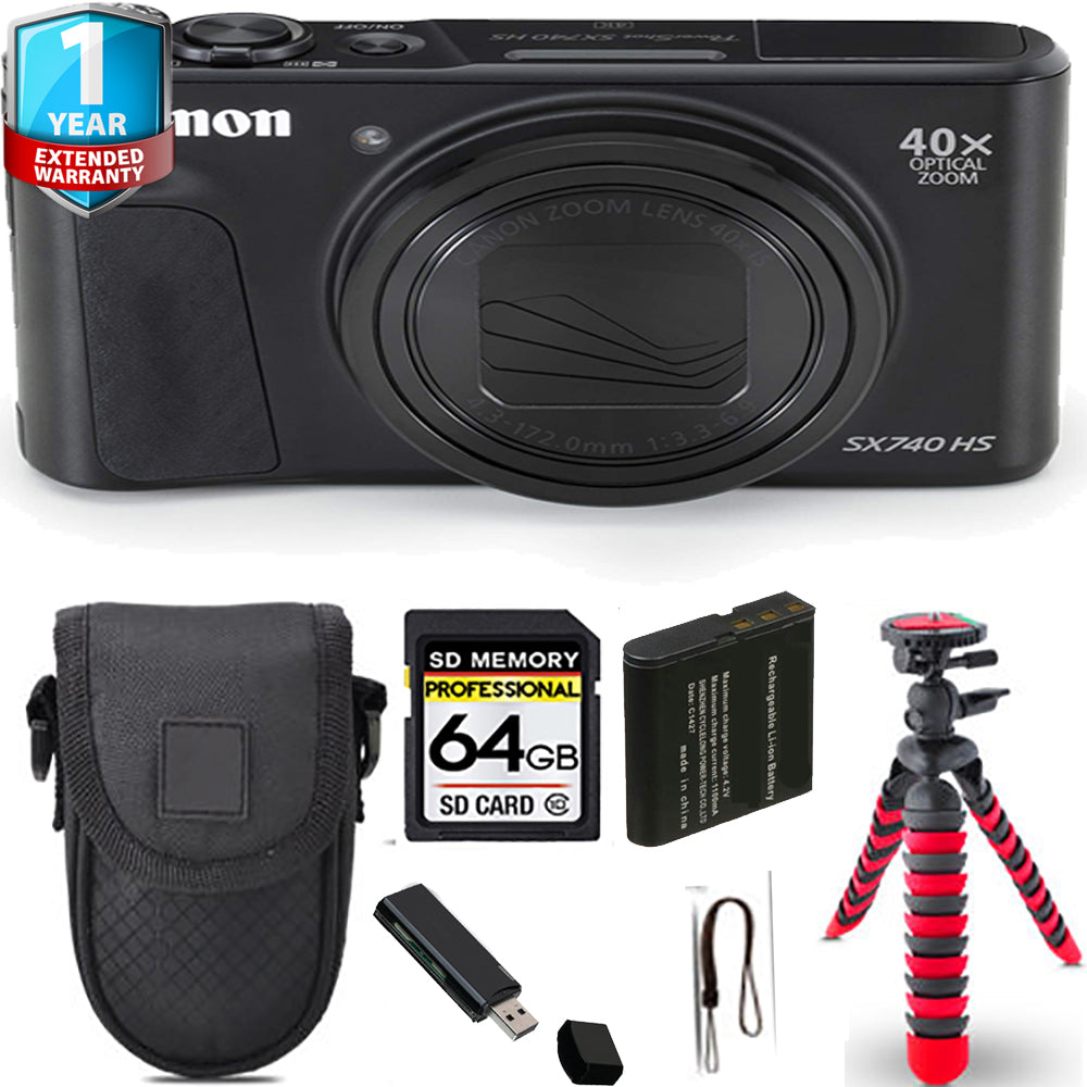 Canon PowerShot SX740 HS Digital Camera (Black) + Spider Tripod + 1 Yr Warranty - 64GB