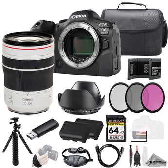 About Canon EOS R6 II + RF 70-200mm f/4L IS USM Lens +64GB + Ext Bat+ 3 PC Filter- Kit