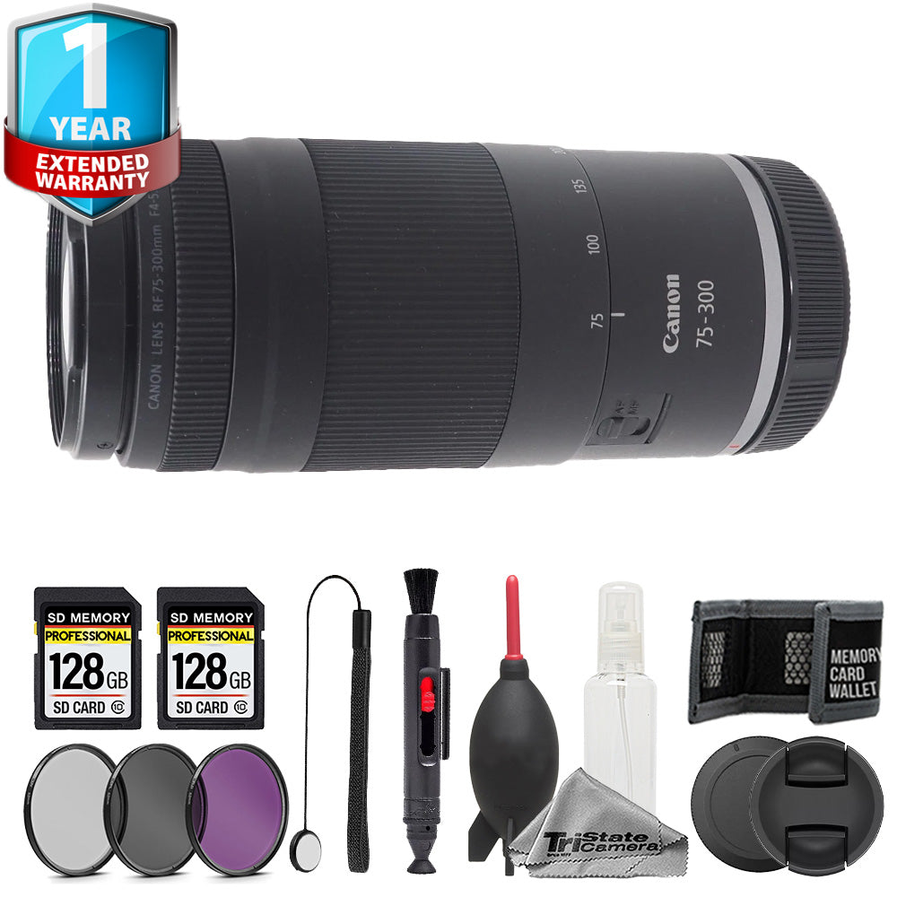 Canon RF 75-300mm f/4-5.6 Lens - 11pc 256GB Memory Care Bundle + 1 Yr Warranty