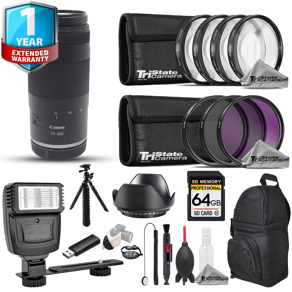 About Canon RF 75-300mm f/4-5.6 Lens - 19pc 64GB Pro Bundle + 1 Yr Warranty