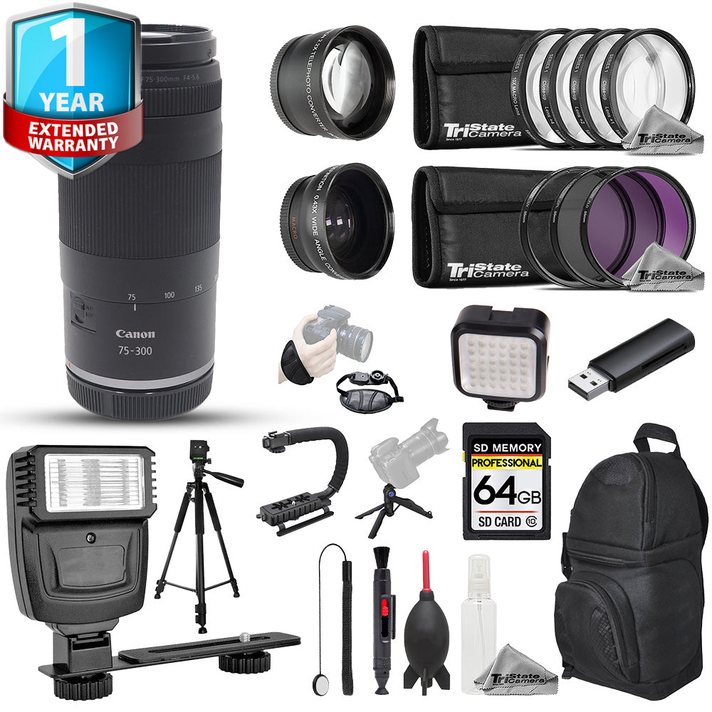 About Canon RF 75-300mm f/4-5.6 Lens - 23pc 64GB Ultra Bundle + 1 Yr Warranty