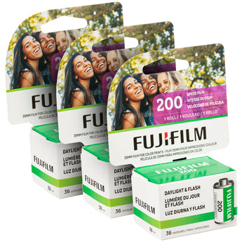 FUJIFILM 200 Color Negative Film is a medium-speed daylight-balanced film offering a vivid color palette and excellent sharpness. It features a nominal sensitivity of ISO 200/24° along with a wide exposure latitude for use in a variety of lighting conditions. The film offers beautiful and natural skin tones for portraits and group settings, and its fine-grain structure enables high-quality results for prints and enlargements.Fujifilm 200 Color Negative Film (35mm Roll Film, 36 Exposures) 3x Packs Specifications