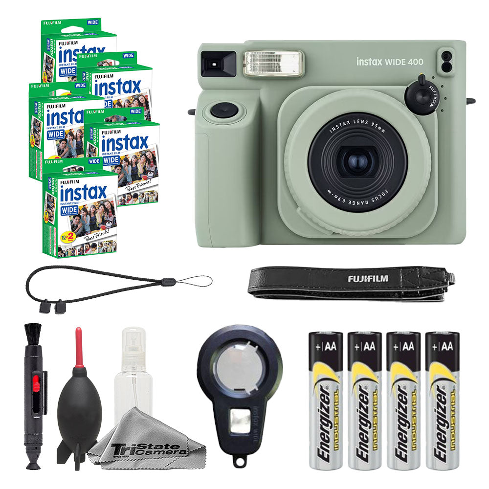 About Fujifilm Instax Wide 400 Instant Film Camera (Green) + Instax Wide Instant Film (100 Sheets) + Cleaning Kit