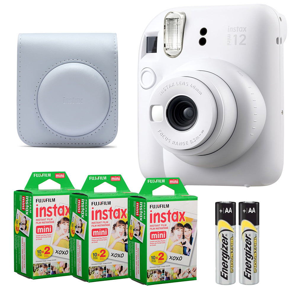 Fujifilm Instax Mini 12 Camera (Clay White) + Case + Instax Mini Instant Film (60 Sheets)