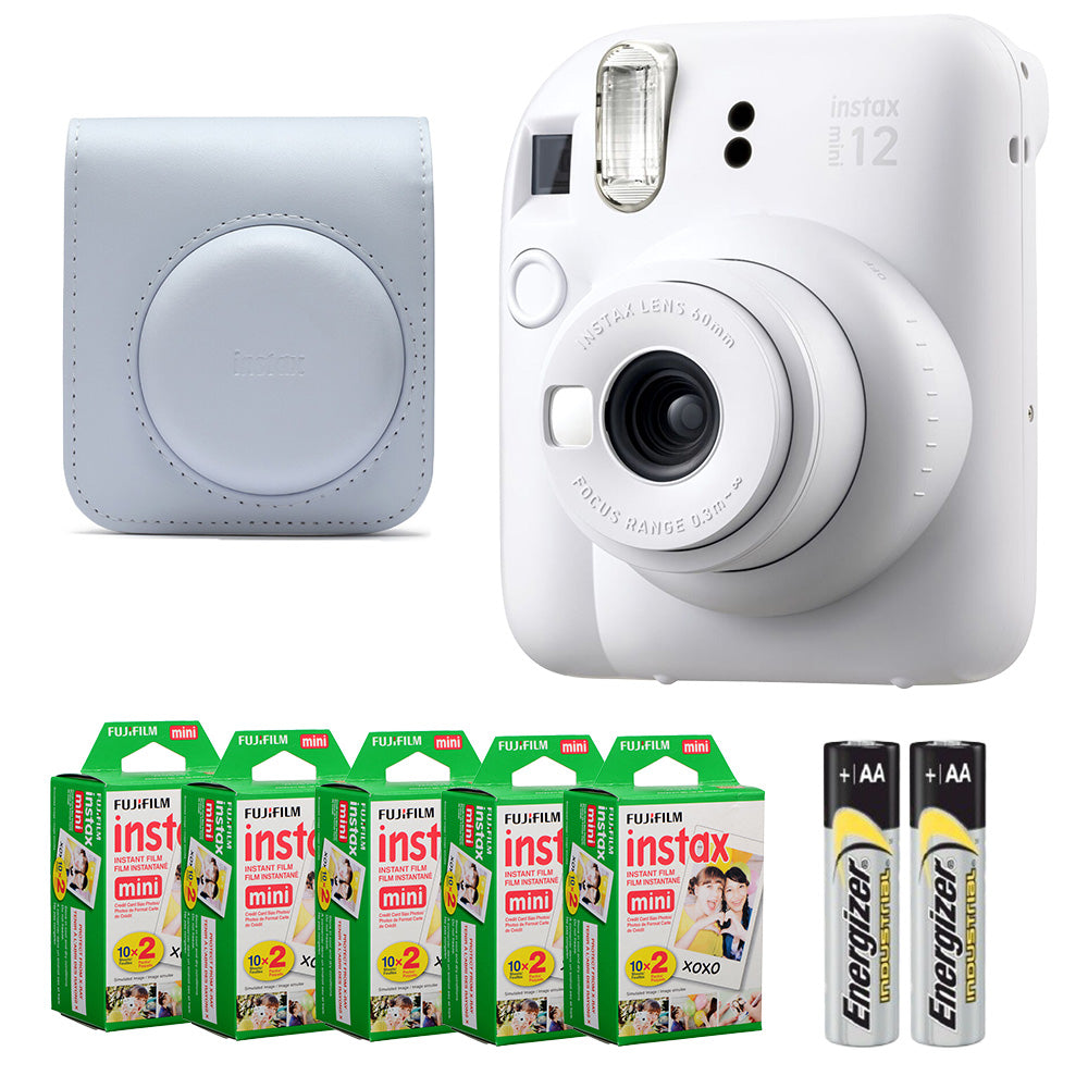 Fujifilm Instax Mini 12 Camera (Clay White) + Case + Instax Mini Instant Film (100 Sheets)
