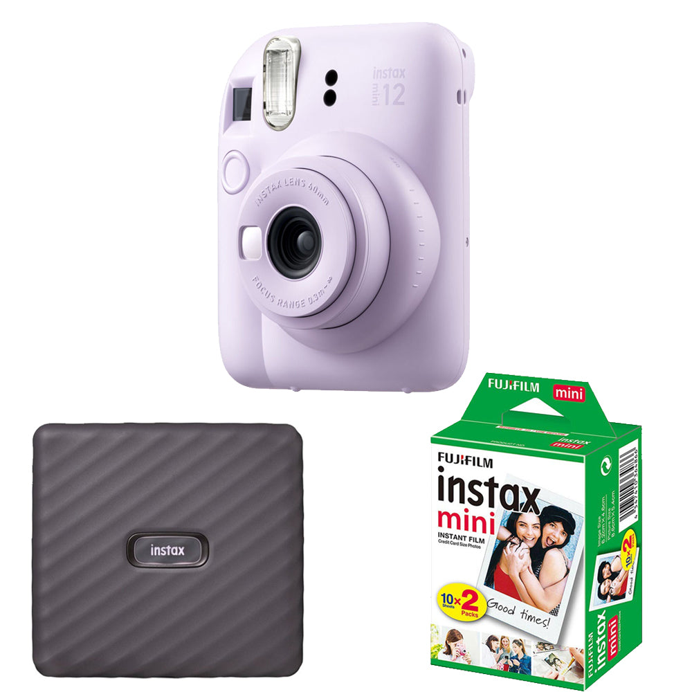 Fujifilm Instax Mini 12 Instant Film Camera (Lilac Purple) + Mini Film Printer Kit
