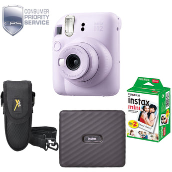 Fujifilm Instax Mini 12 Instant Film Camera (Lilac Purple) + Camera Case + Mini Film Printer Kit+ 1YR WTY