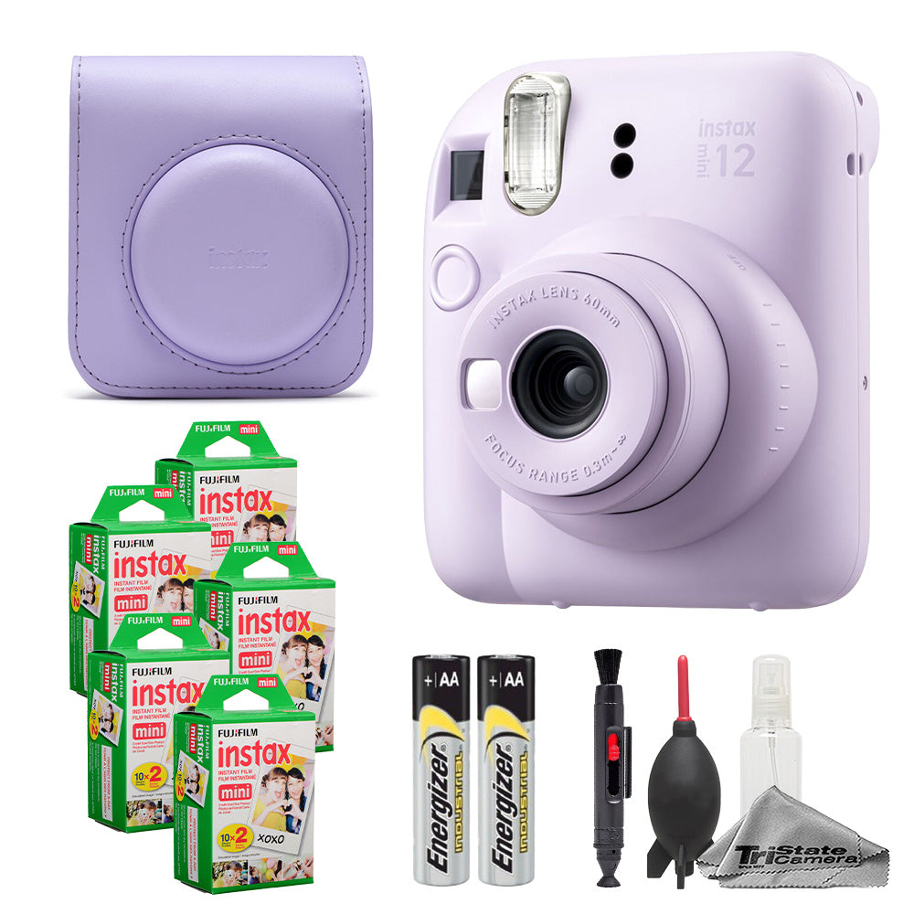Fujifilm Instax Mini 12 Camera (Lilac Purple) + Case + Instax Mini Instant Film (100 Sheets) + Cleaning Kit