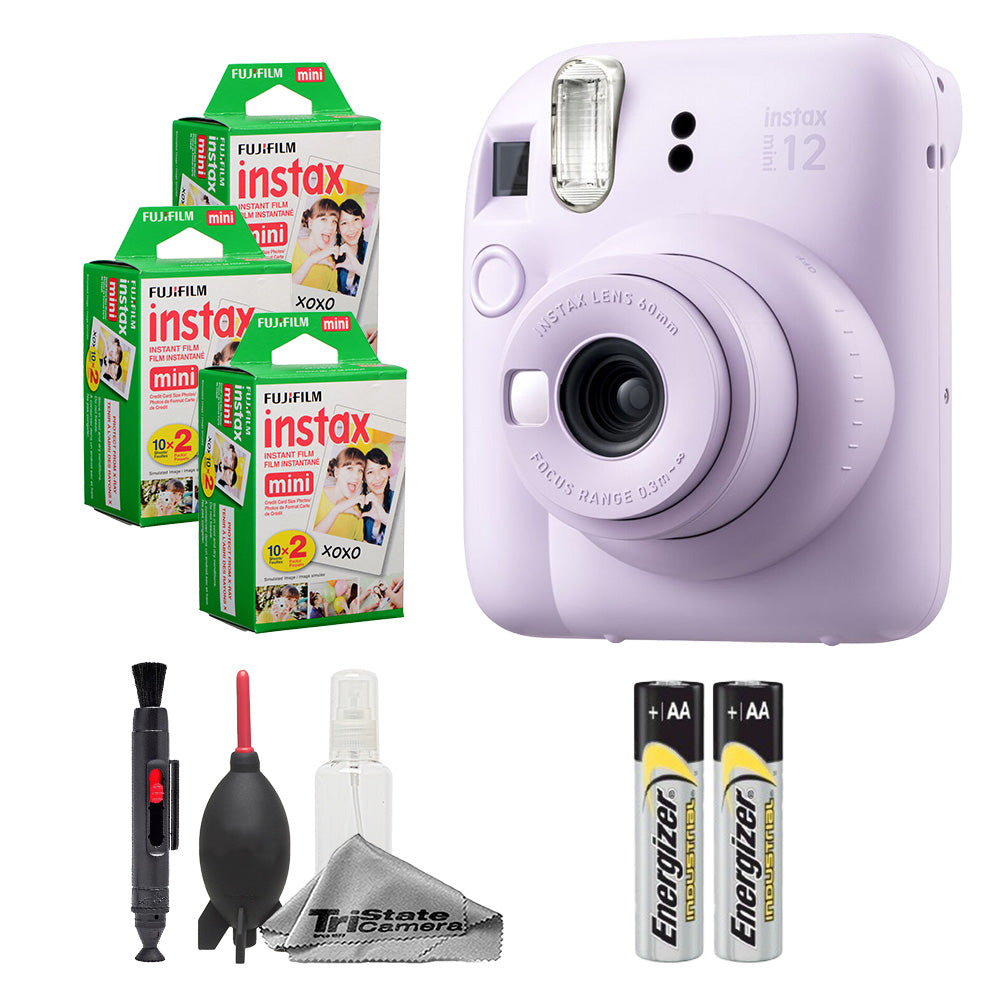 Fujifilm Instax Mini 12 Camera (Lilac Purple) + Instax Mini Instant Film (60 Sheets) + Cleaning Kit