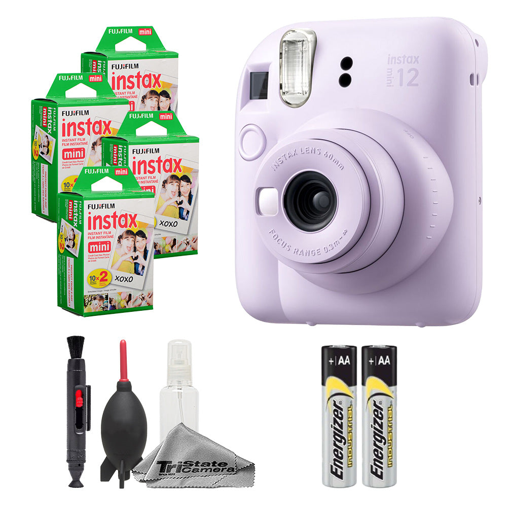 Fujifilm Instax Mini 12 Camera (Lilac Purple) + Instax Mini Instant Film (80 Sheets) + Cleaning Kit