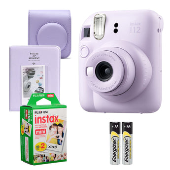 Kit Main Item Description: Dedicated to the joy of living in the moment, the FUJIFILM INSTAX MINI 12 Instant Film Camera provides easy-to-use controls and quickly produces memorable credit-card-sized photos. Offered here in lilac purple, this instant camera is ready to go with a simple twist of the lens. A close-up mode and selfie mirror make the camera perfect for portraits and self-portraits, and the camera's automatic flash system allows you to get shots in dimly-lit environments.