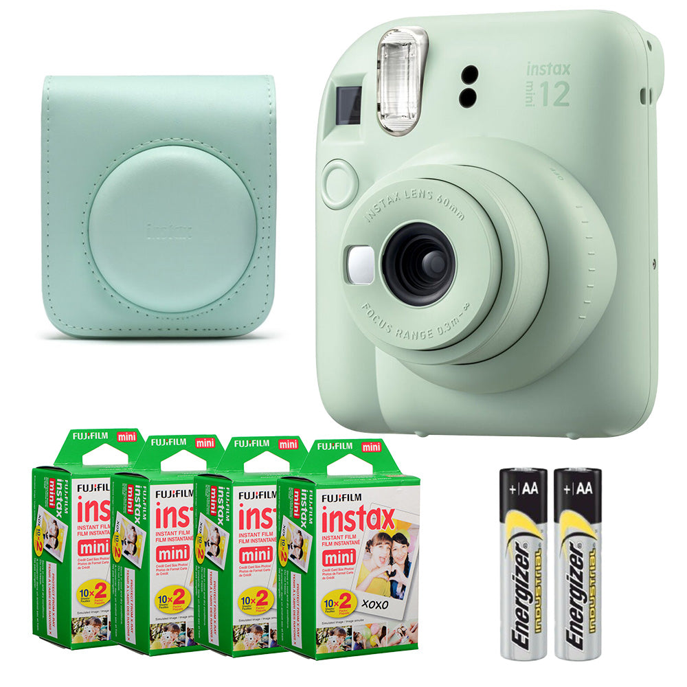 Fujifilm Instax Mini 12 Camera (Mint Green) + Case + Instax Mini Instant Film (80 Sheets)