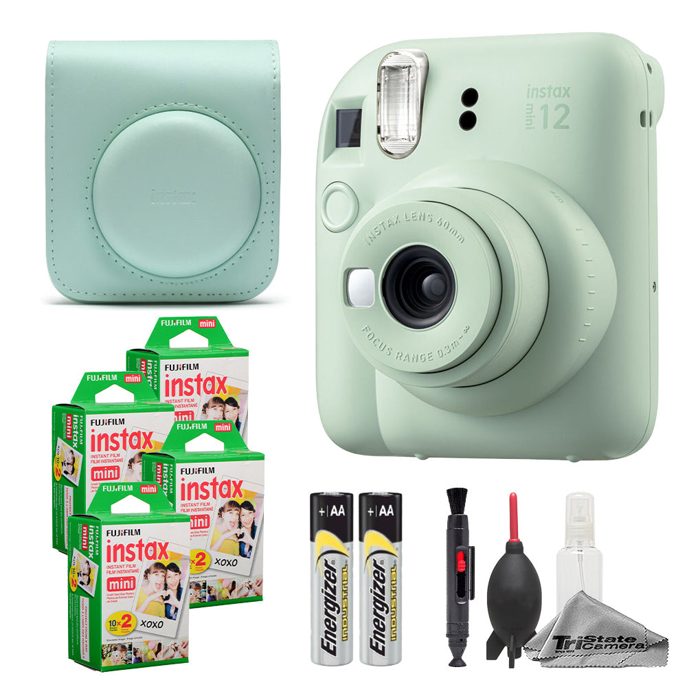 Fujifilm Instax Mini 12 Camera (Mint Green) + Case + Instax Mini Instant Film (80 Sheets) + Cleaning Kit