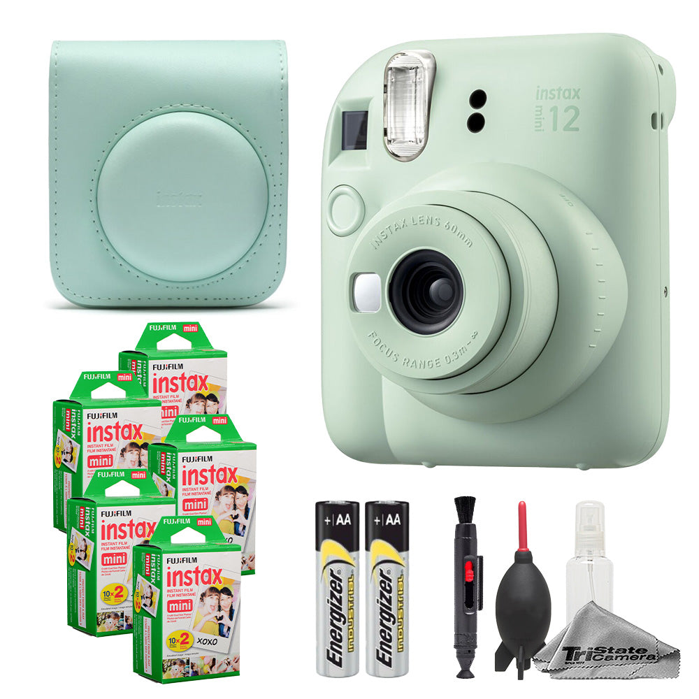 Fujifilm Instax Mini 12 Camera (Mint Green) + Case + Instax Mini Instant Film (100 Sheets) + Cleaning Kit