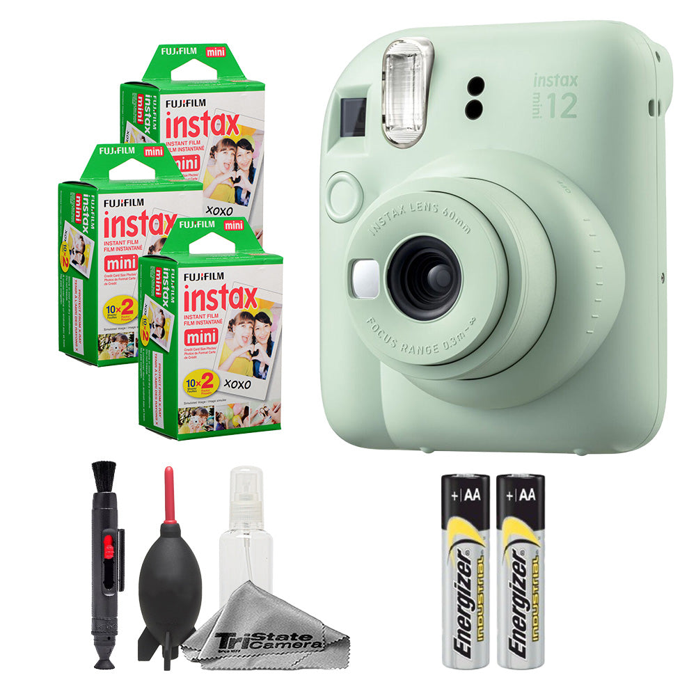 Fujifilm Instax Mini 12 Camera (Mint Green) + Instax Mini Instant Film (60 Sheets) + Cleaning Kit