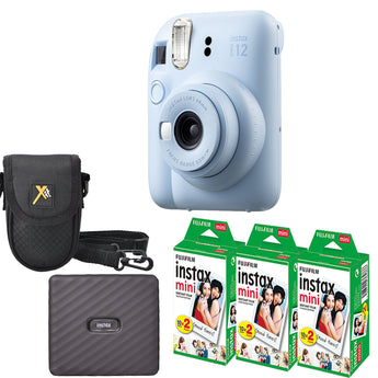 Fujifilm Instax Mini 12 Instant Film Camera (Pastel Blue) + Camera Case + Mini Film Printer Kit (3 Pack)