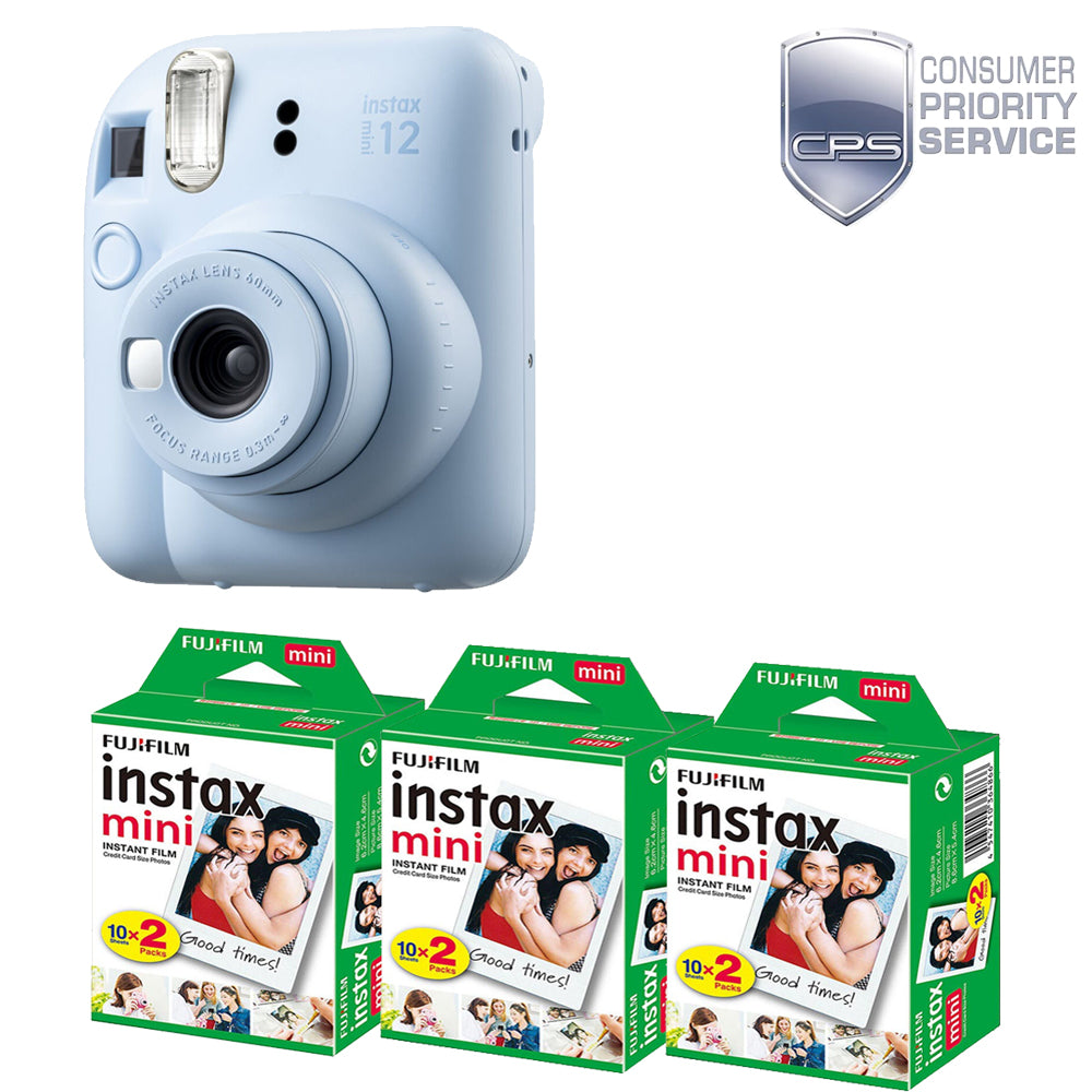 Fujifilm Instax Mini 12 Instant Film Camera (Pastel Blue) + Mini Film Kit (3 Pack)+ 1YR WTY