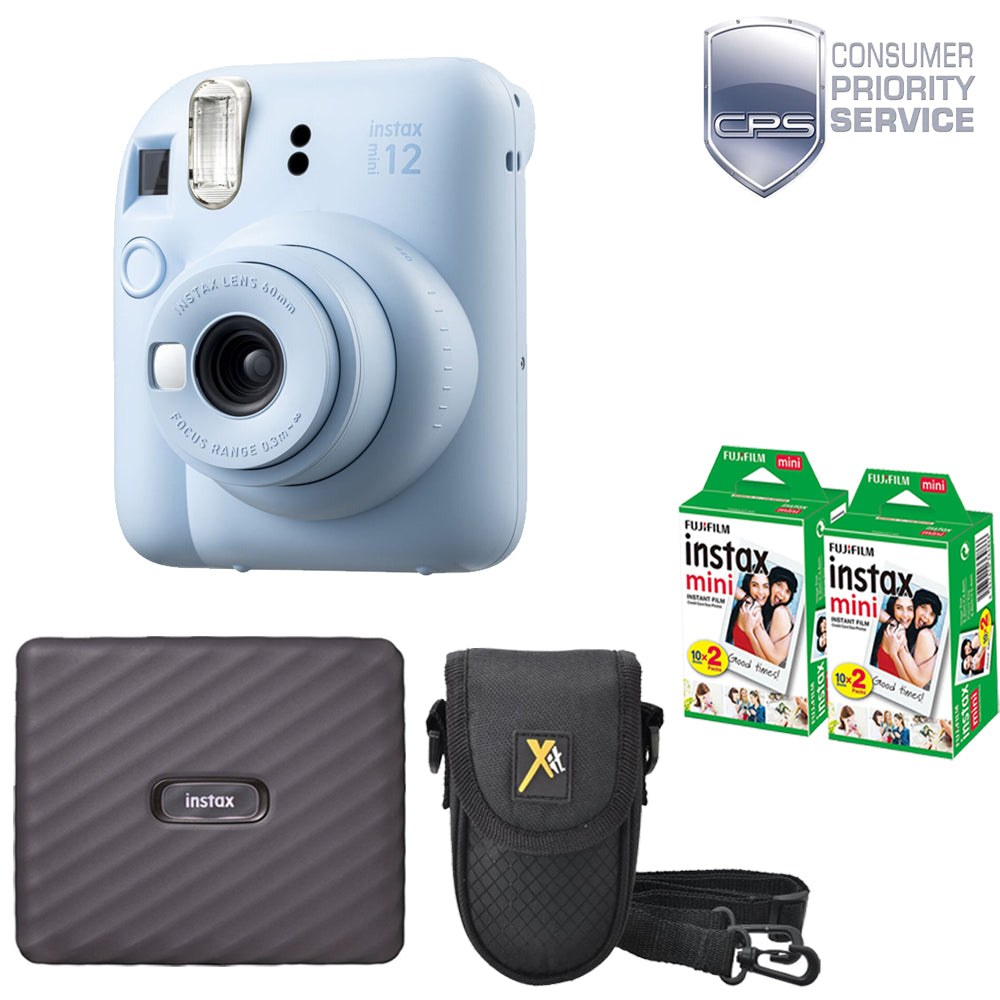 Fujifilm Instax Mini 12 Instant Film Camera (Pastel Blue) + Camera Case + Mini Film Printer Kit (2 Pack)+ 1YR WTY