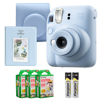 Kit Main Item Description: Dedicated to the joy of living in the moment, the FUJIFILM INSTAX MINI 12 Instant Film Camera provides easy-to-use controls and quickly produces memorable credit-card-sized photos. Offered here in pastel blue, this instant camera is ready to go with a simple twist of the lens. A close-up mode and selfie mirror make the camera perfect for portraits and self-portraits, and the camera's automatic flash system allows you to get shots in dimly-lit environments.