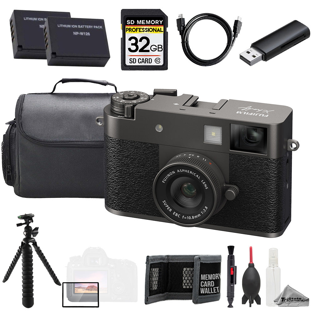 FUJIFILM X half Compact Digital Camera (Charcoal Silver) + 32GB + Extra Battery + Tripod- Value Kit