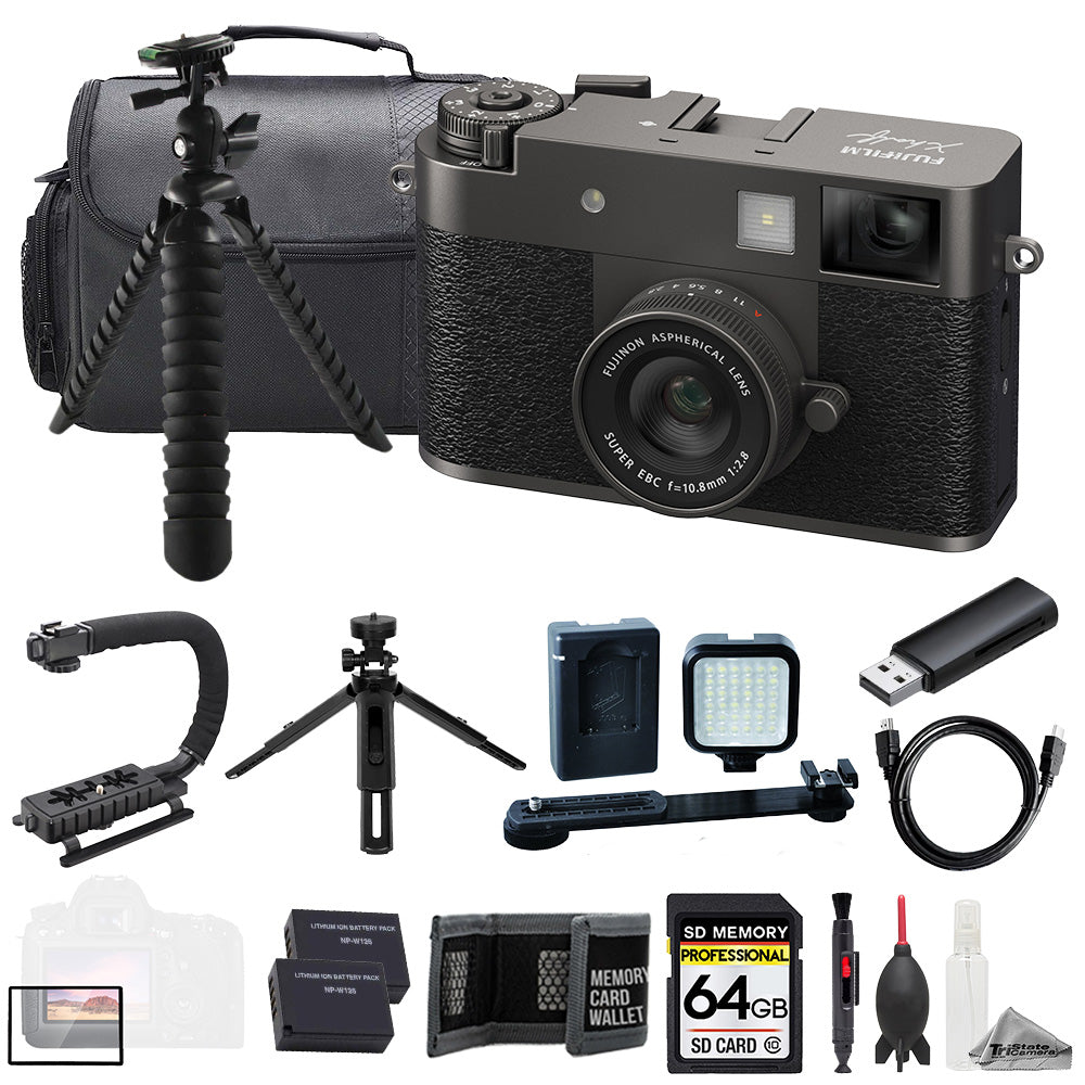 FUJIFILM X half Compact Digital Camera (Charcoal Silver) + 64GB + Ext Batt+ LED Light- ULTIMATE Kit
