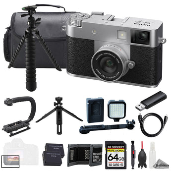 FUJIFILM X half Compact Digital Camera (Silver) + 64GB + Ext Batt+ LED Light- ULTIMATE Kit
