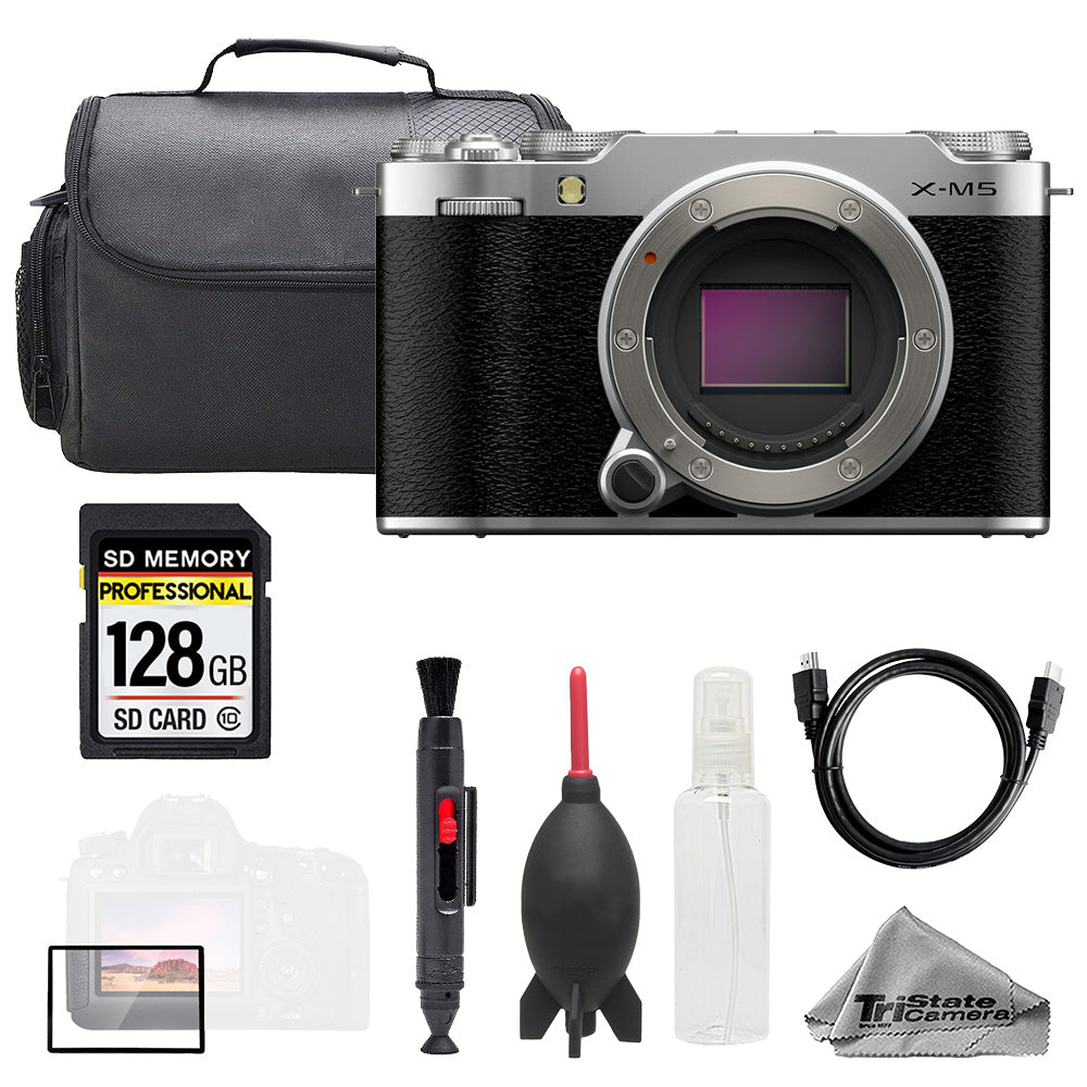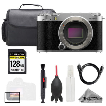 About Fujifilm X-M5 Mirrorless Camera (Silver) + 128GB + Bag+ Screen Protector- Basic Kit