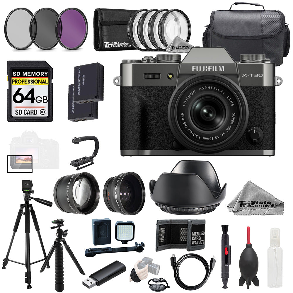 About Fujifilm X-T30 III Camera w/ 13-33mm Lens (Charcoal Silver) +64GB +Ext Bat+ 9 PC Filter-MEGA Kit
