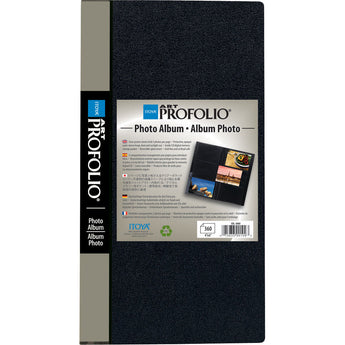 The black and gray Slim Profolio 4 x 6" Photo Album from Itoya holds up to 360 standard or digital photos or card stock at three 4 x 6" prints a page. Constructed from archival-safe polypropylene, it features a black opaque cover as well as a protective dust sleeve made from the same material in order to keep out sunlight and airborne contaminants. To personalize your album, there is a reversible spine insert, and an enclosed storage pocket inside the cover that allows you to hold memory cards, notes or CD's.Itoya Slim Profolio 4 x 6" Photo Album (360 Photos) OL-360BK Specifications