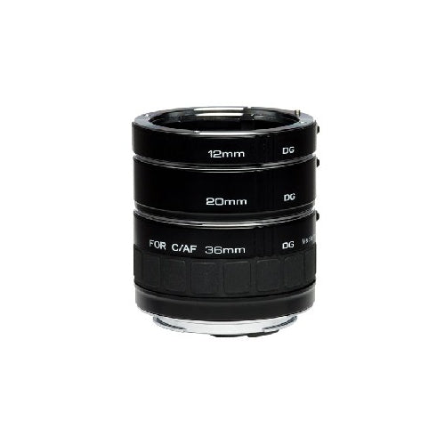 The Auto Extension Tube Set DG for Canon EOS Lenses from Kenko contains three tubes of different lengths--12mm, 20mm, and 36mm--which can be used individually or in any combination to obtain the desired magnification. They are compatible with Canon EF and EFS lenses. Extension tubes are designed to enable a lens to focus closer than its normal minimum focusing distance. They have the effect of magnifying your subject and are useful for macro photography, allowing you to convert almost any lens into a macro lens while maintaining its original optical quality. The extension tubes have no optics. They are mounted between the camera body and lens to create more distance between the lens and film/sensor plane. By moving the lens farther away from the film or sensor in the camera, the lens is forced to focus much closer than normal. The greater the length of the extension tube, the closer the lens can focus. These Kenko Auto Extension Tubes retain auto focus capability with Canon AF lenses providing the effective aperture stays at f/5.6 or brighter.Kenko Auto Extension Tube Set DG for Canon EF Lenses Specifications