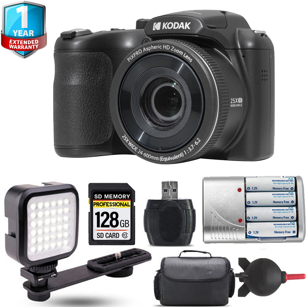 Kodak PIXPRO AZ255 Digital Camera (Black) + Extra Battery + 1 Yr Warranty - 128GB Kit