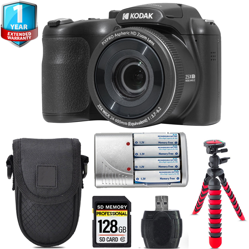 Kodak PIXPRO AZ255 Digital Camera (Black) + Extra Battery +1 Yr Warranty + Case -128GB