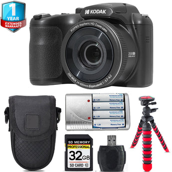 Kodak PIXPRO AZ255 Digital Camera (Black) + 1 Yr Warranty +Tripod + Case -32GB Kit