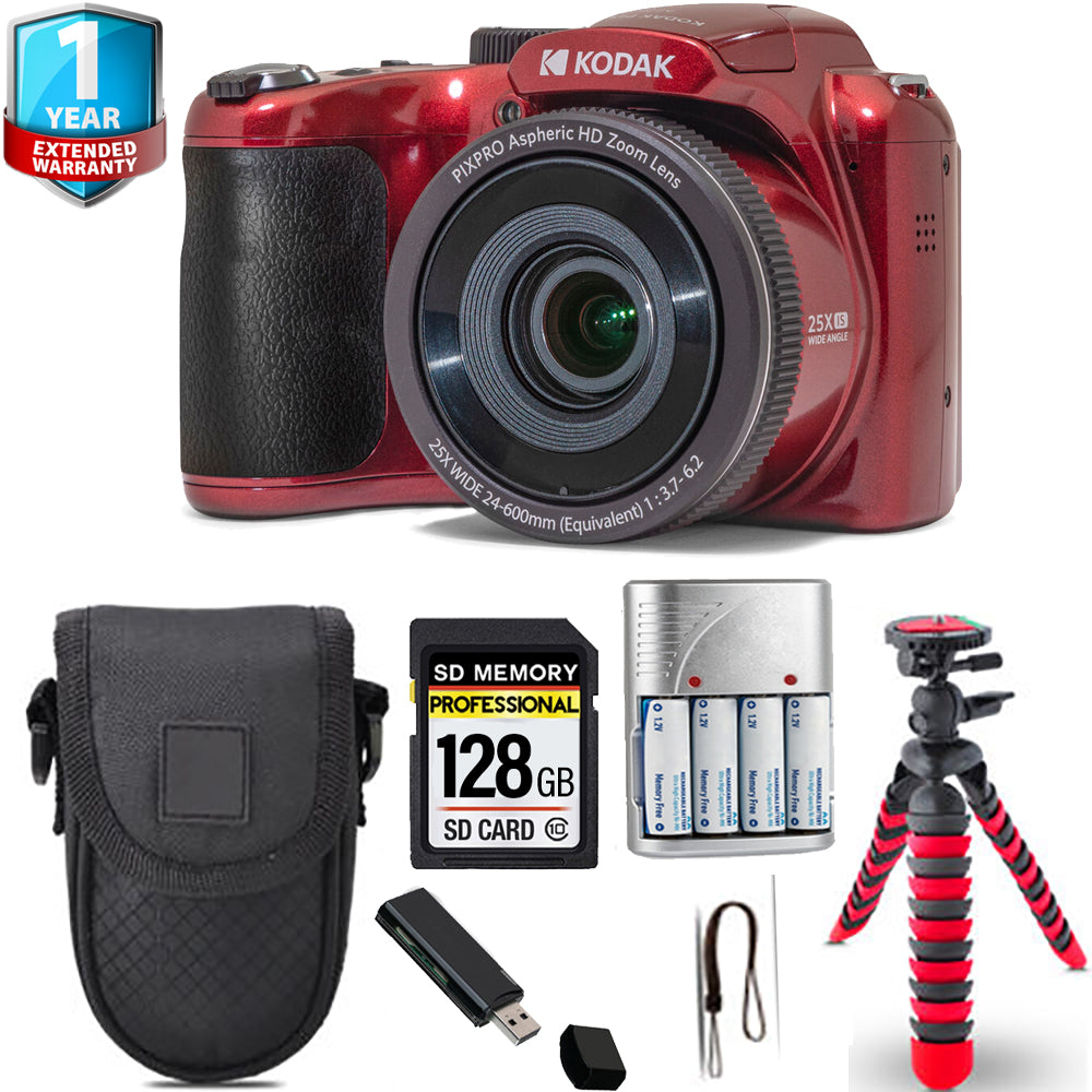 Kodak PIXPRO AZ255 Digital Camera (Red) + Spider Tripod + 1 Yr Warranty - 64GB