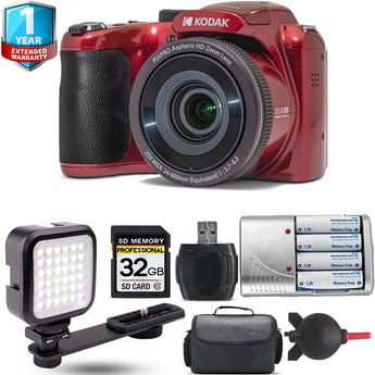 Kodak PIXPRO AZ255 Digital Camera (Red) + Extra Battery + LED +1 Yr Warranty