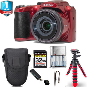 Kodak PIXPRO AZ255 Digital Camera (Red) + Spider Tripod + Case+ 1 Yr Warranty