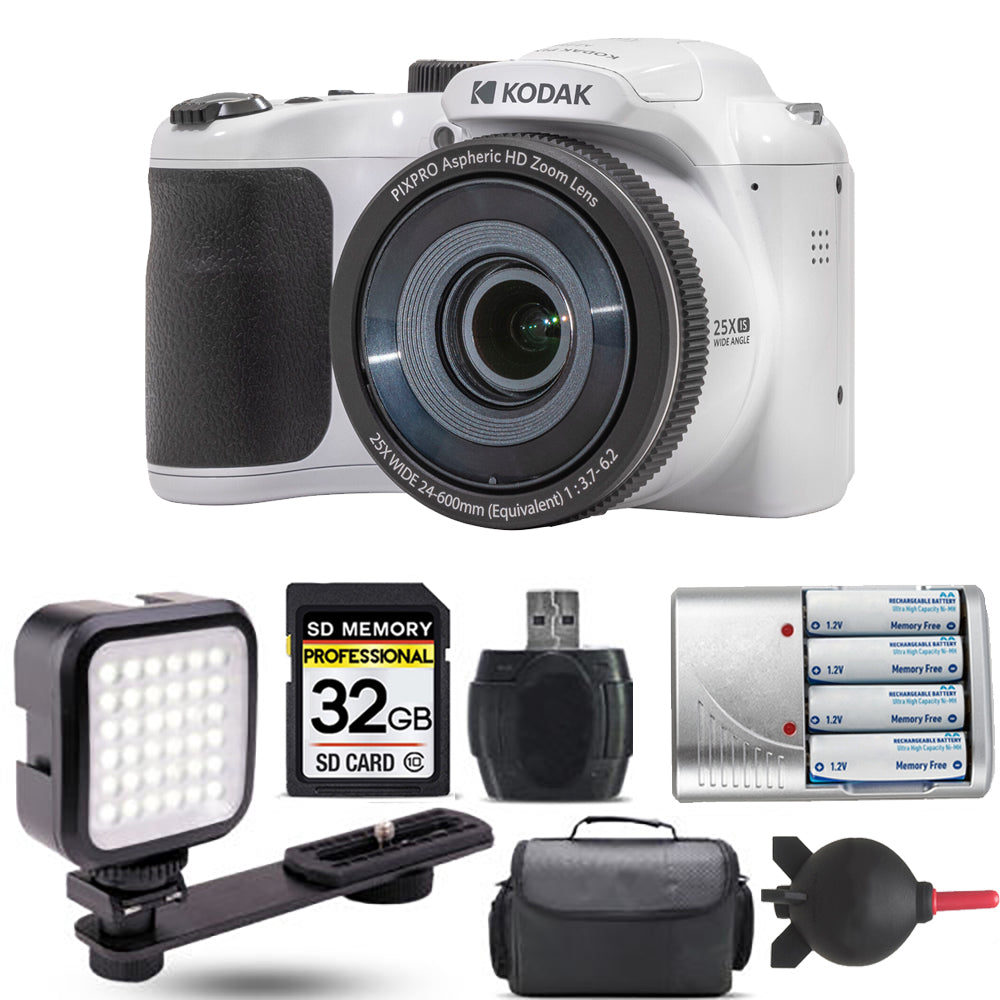 Kodak PIXPRO AZ255 Digital Camera (White)+ Extra Battery + LED - 32GB Kit