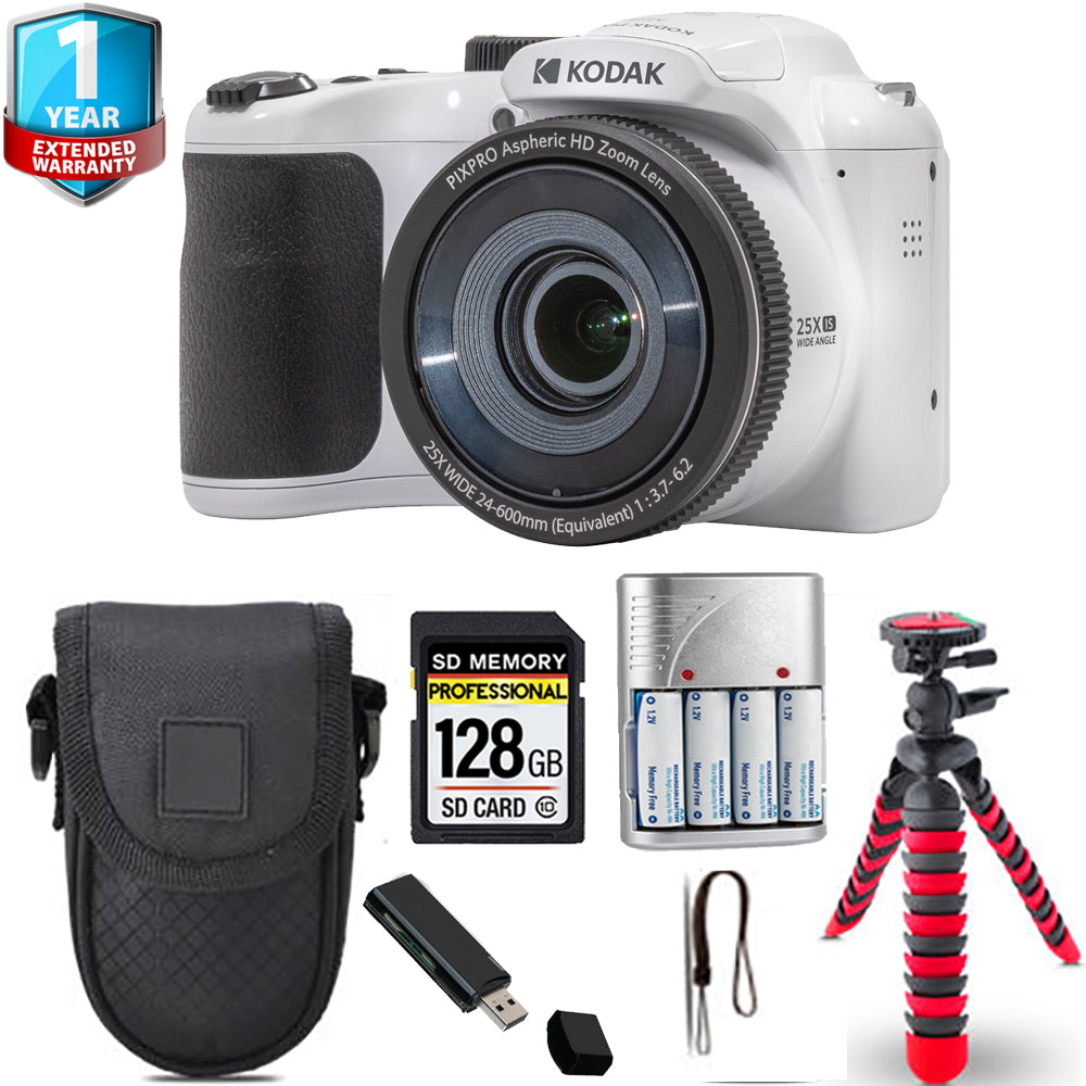 Kodak PIXPRO AZ255 Digital Camera (White) + Spider Tripod + Case+ 1 Yr Warranty