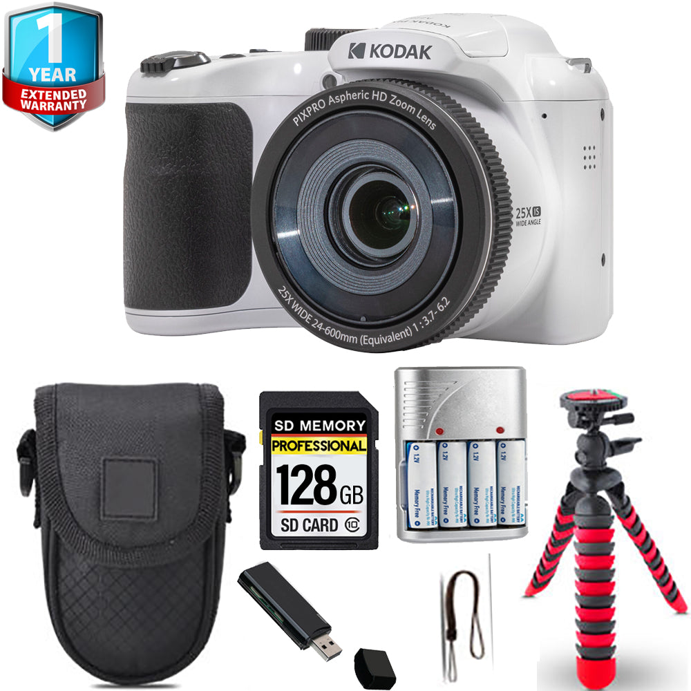 Kodak PIXPRO AZ255 Digital Camera (White) + Spider Tripod + 1 Yr Warranty - 64GB