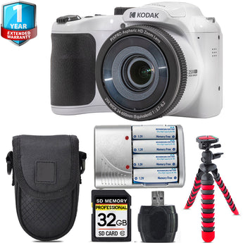 Kodak PIXPRO AZ255 Digital Camera (White) + 1 Yr Warranty +Tripod + Case -32GB Kit