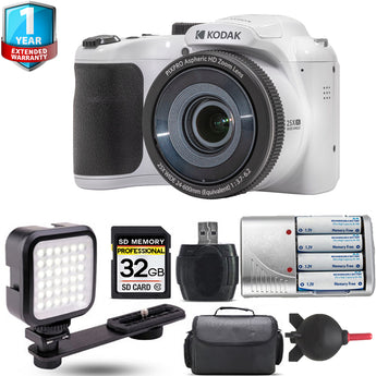 Kodak PIXPRO AZ255 Digital Camera (White) + Extra Battery + LED +1 Yr Warranty