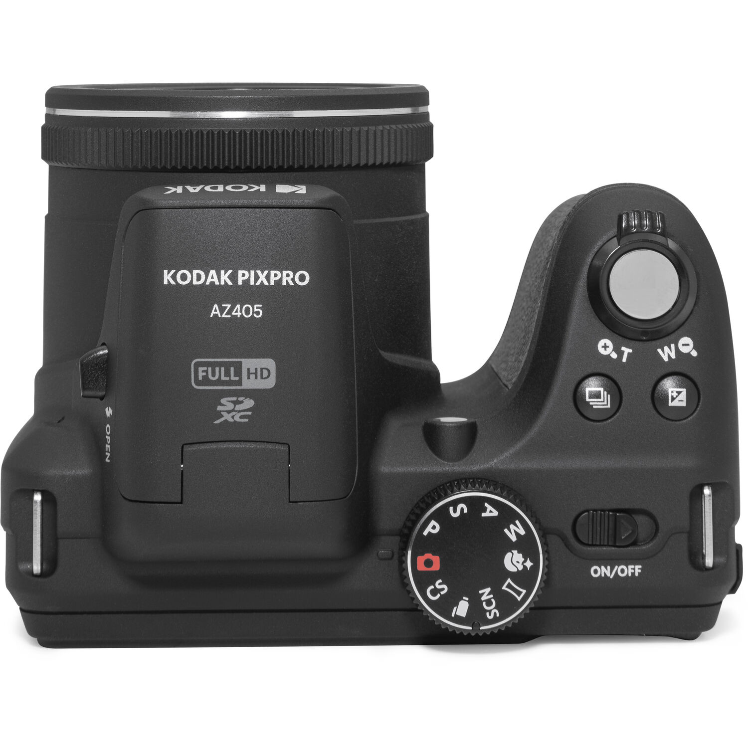 The PIXPRO AZ405 Digital Camera from Kodak is distinguished by a long-reaching 40x zoom along with versatile recording capabilities. A 20MP CCD sensor enables recording high-resolution stills and HD 720p video, as well as an expandable sensitivity range from ISO 80-3200 for working in a variety of lighting conditions. The expansive zoom covers a 24-960mm equivalent focal length range for working with subjects both near and far, and optical image stabilization helps to minimize the appearance of camera shake for sharper handheld shooting. The camera has a rear 3.0" 460k-dot LCD monitor and is conveniently powered by four AA batteries.
