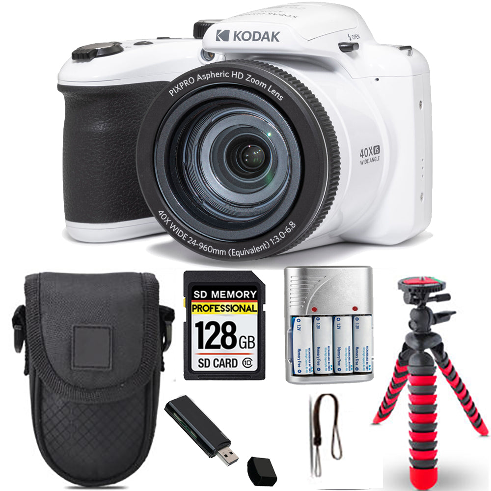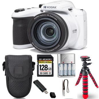 Kodak PIXPRO AZ405 Digital Camera (White)+ Spider Tripod + Case - 128GB Kit