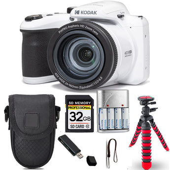 Kodak PIXPRO AZ405 Digital Camera (White) + Spider Tripod + Case - 32GB Kit
