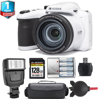 Kodak PIXPRO AZ405 Digital Camera (White) + Extra Battery + Flash+ 1 Yr Warranty