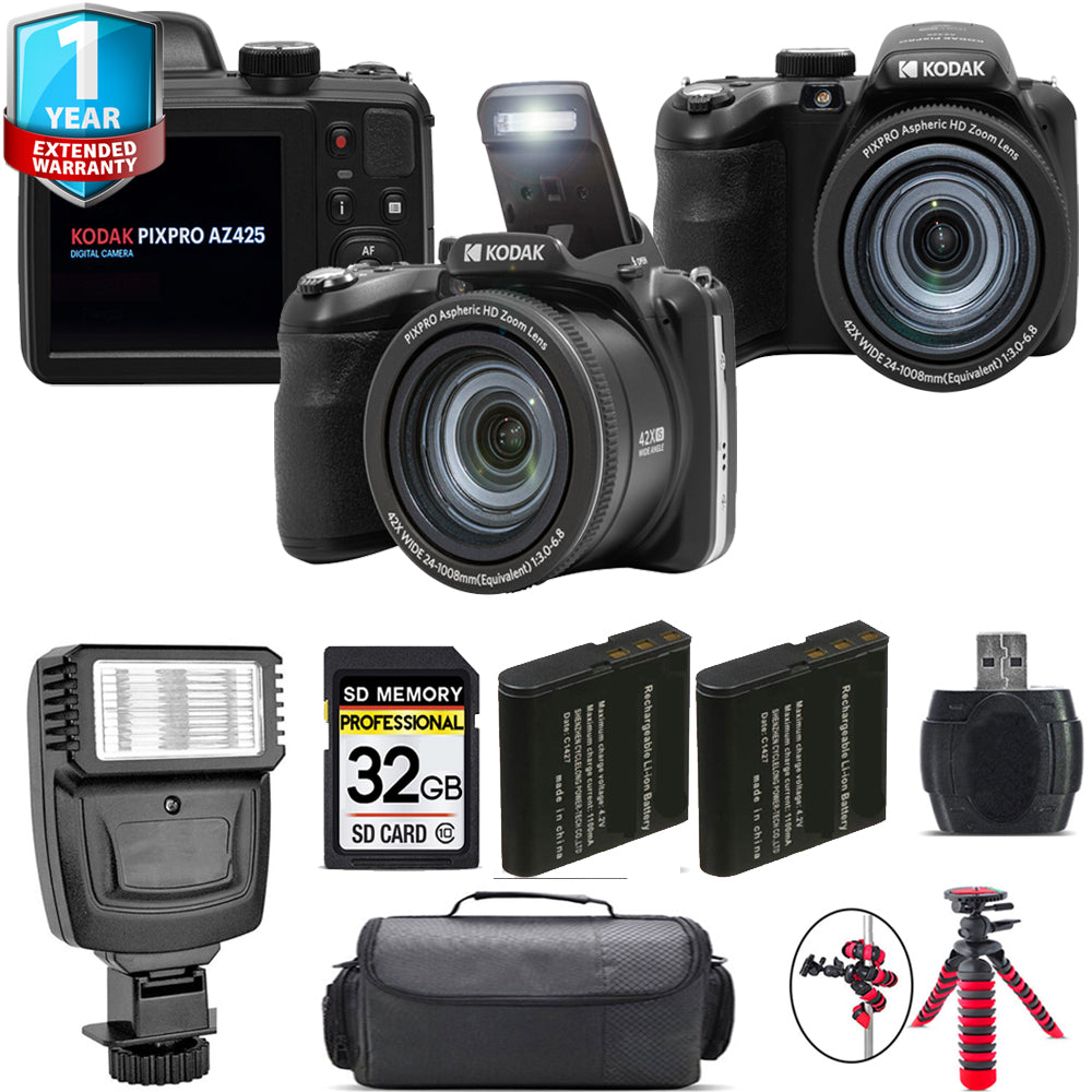 Kodak PIXPRO AZ425 Digital Camera (Black) + Extra Battery + 1 Yr Warranty + 32GB