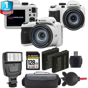 Kodak PIXPRO AZ425 Digital Camera (White) + Extra Battery + Flash+ 1 Yr Warranty