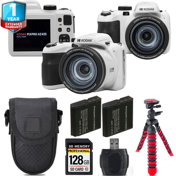 Kodak PIXPRO AZ425 Digital Camera (White) + Extra Battery +1 Yr Warranty + Case -128GB