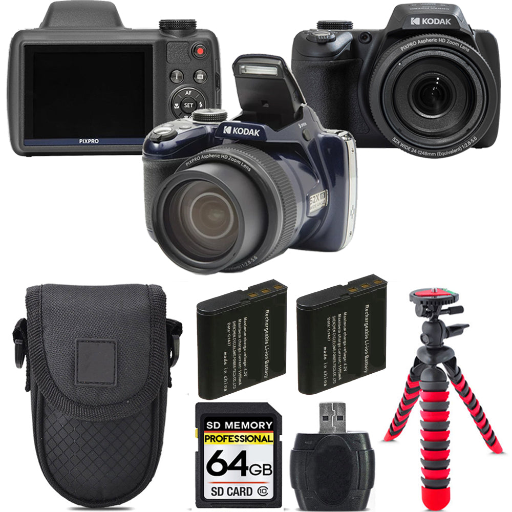 Kodak PIXPRO AZ528 Digital Camera (Black) Extra Battery +Tripod + Case -64GB Kit