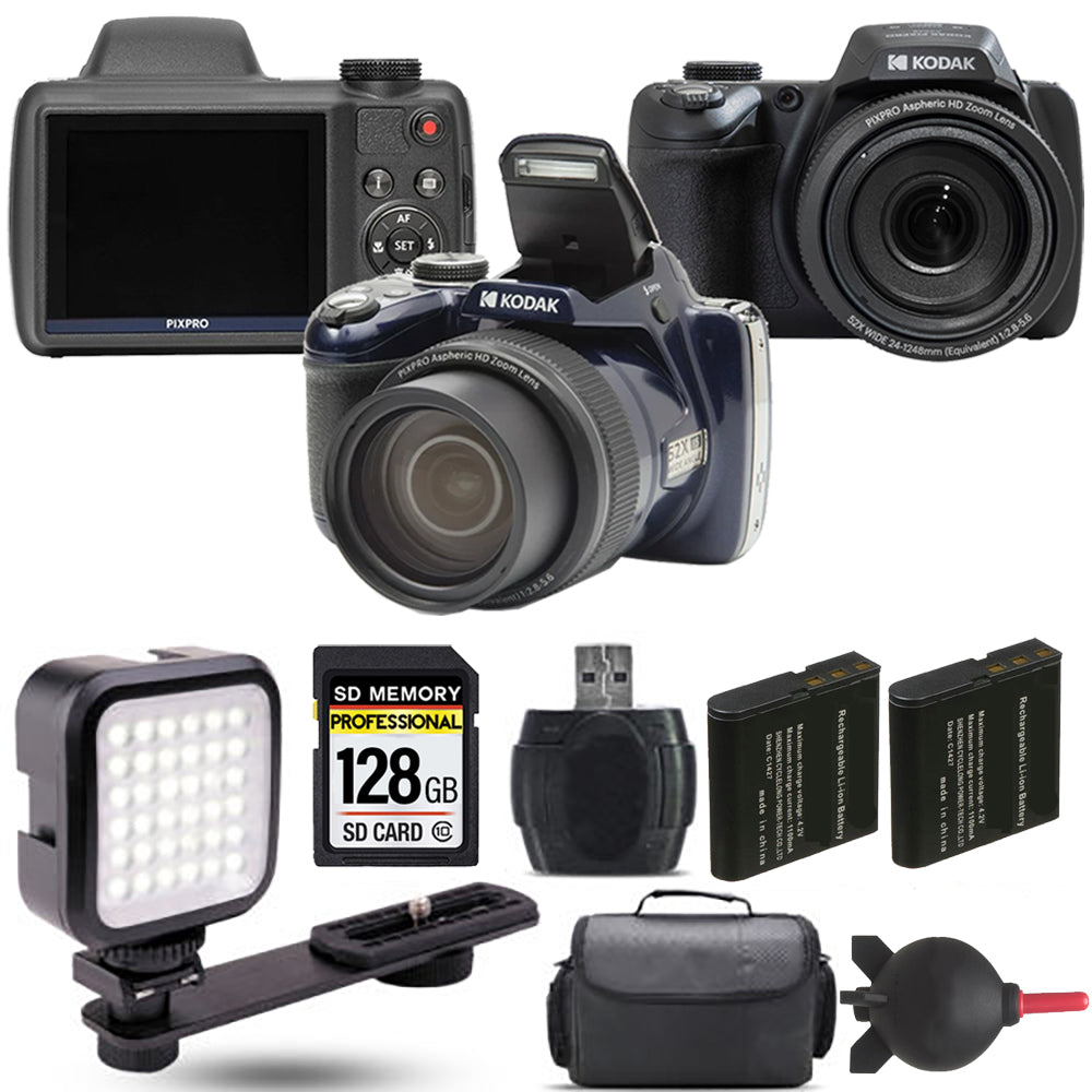 Kodak PIXPRO AZ528 Digital Camera (Black) Extra Battery + LED - 128GB Kit